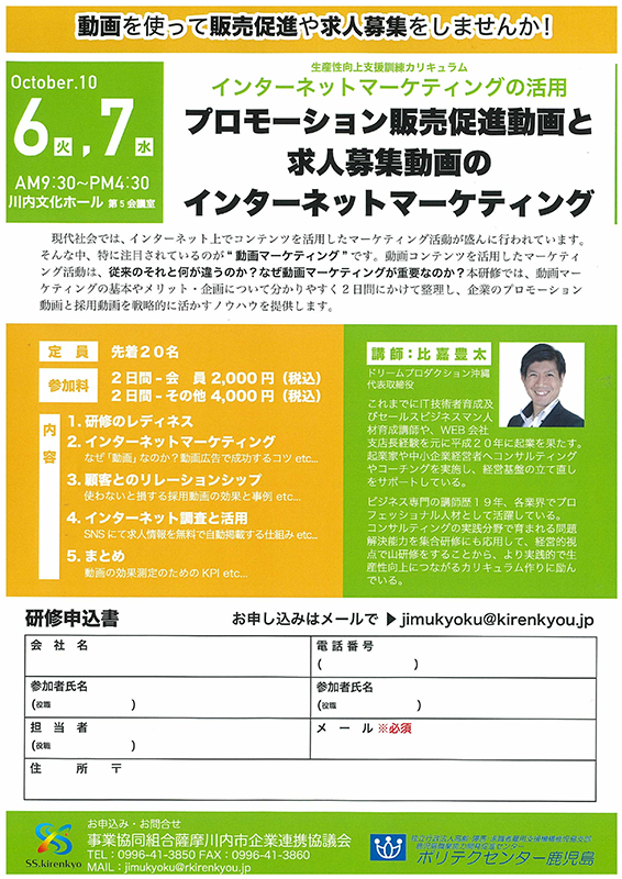 2020/10/09「プロモーション販売促進動画と求人募集動画のインターネットマーケティング」と題した研修へ参加しました。