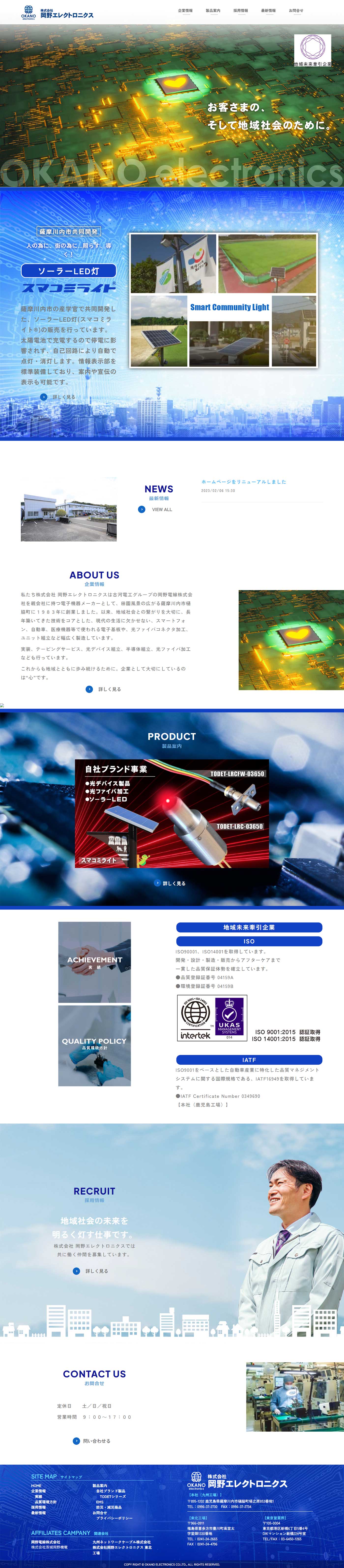 「岡野エレクトロニクス」様のサイトを作成しました。 コンテンツの多いページはサイドナビを設置し、すっきりとした見やすい画面作りを行って行っています。